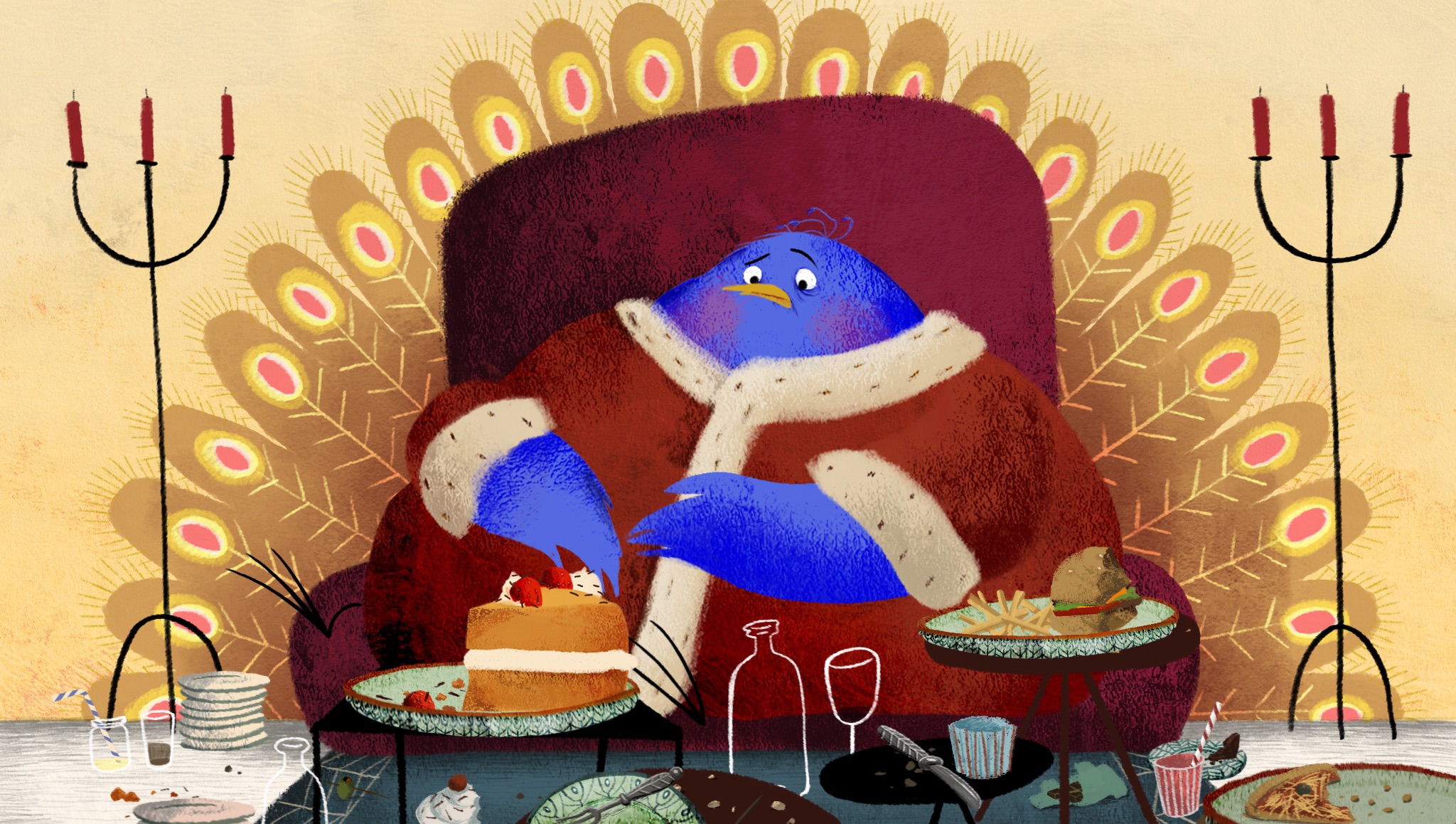 年輕羞澀的孔雀王子總是害怕與人交流,更別說談戀愛了,只好總是在暴飲暴食中尋求安慰。有天,孔雀王子突然肚子痛,一位神秘醫生建議他每天都要喝「神奇泉水」才能痊癒,然而,泉水卻離王宮非常遙遠,而且必須獨自前往,王子能成功找到泉水嗎?