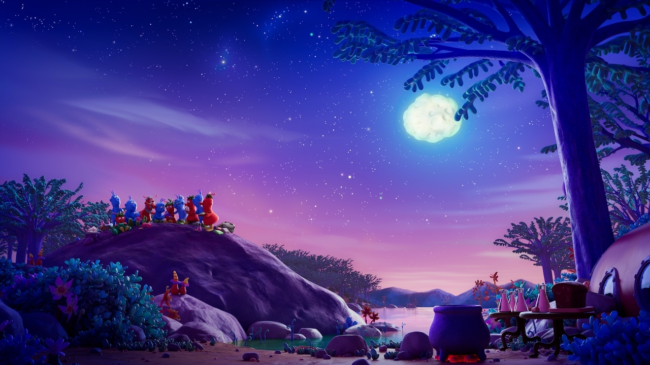 遙遠星球上的紅噗噗與藍嚕嚕家族,多年來互看對方不順眼──可是,兩邊的孩子卻在森林中遇見、相愛了!他們的感情不被家族接受,於是決定私奔。紅藍家族只好一起出發,去探索各種星球,在尋找孩子的同時,也發現和彼此消除誤會、成為朋友的可能。